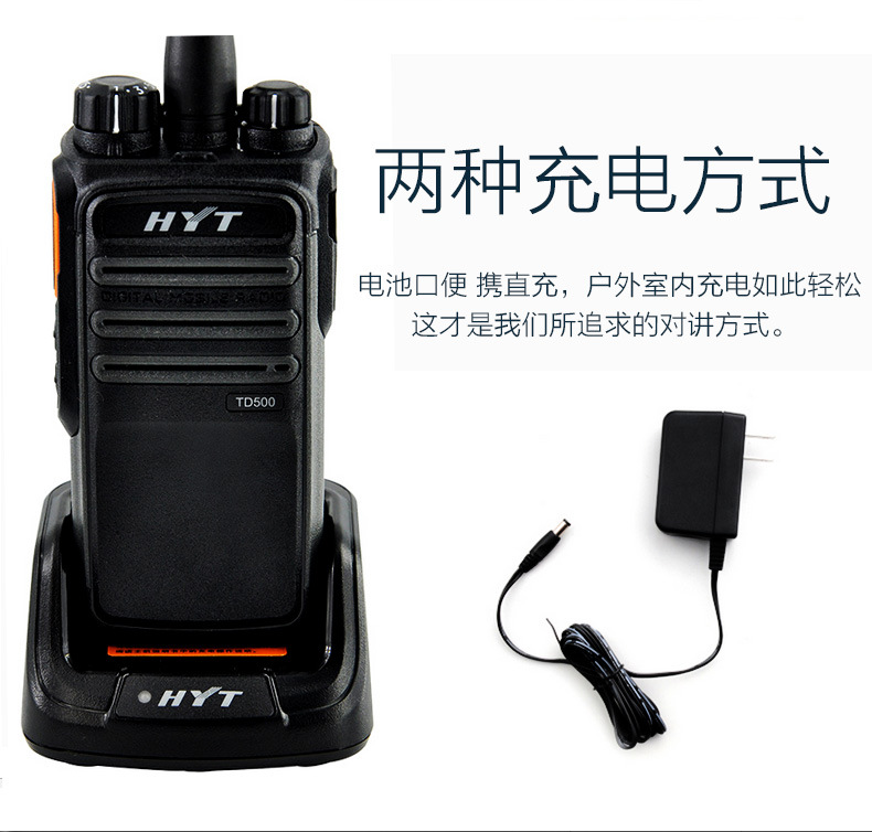 TD500传承了模拟机王的优良性,特有的数字悦音技术让使用者身处嘈杂的环境中,仍能清晰的通话;双时隙通信支持一个信道2组通话,节省频率资源;TD500使用时长比模拟/FDMA对讲机提升了40%。