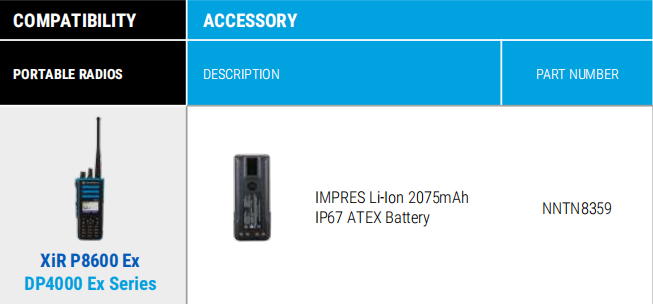 摩托罗拉摩托罗拉XiR P8668EX/P8608EX对讲机防爆电池氢气级防爆NNTN8359
